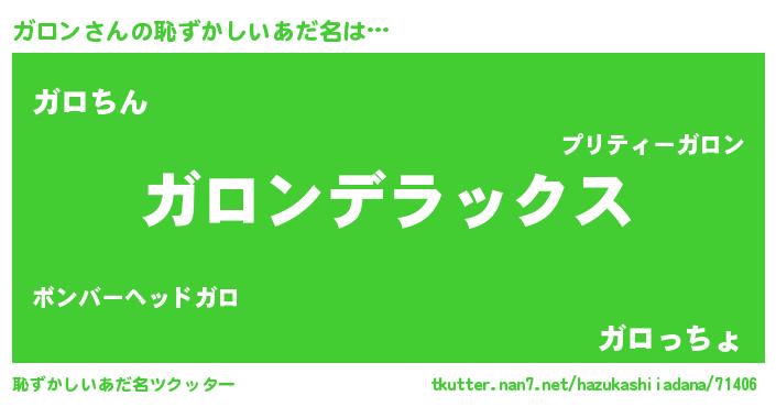 | 意味不明あだ名 | 『自称ガロン』『永久保存ガロン』 |