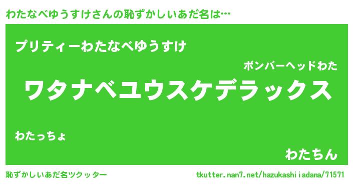 | 女子向けラノベタイトル風あだ名 | 『わたなべゆうすけなんてお断りですっ。』 |