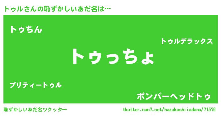 | ポケモン風あだ名 | 『トゥゴンZ』『トゥルダネ』 |