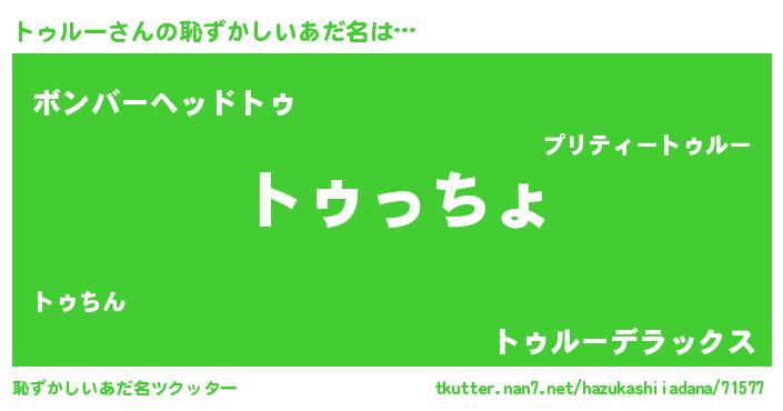 | ヒーロー風カッコイイあだ名 | 『仮面トゥダー』『ウルトラトゥルーマン』 |
