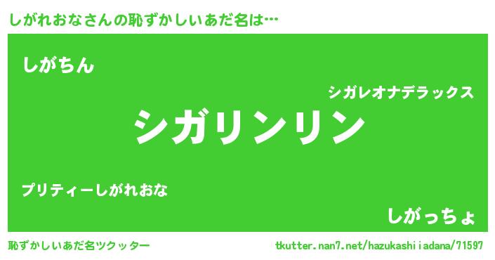| ヘコむあだ名 | 『しがぷりん』『しがれおな(笑)』 |