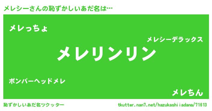 | ヘコむあだ名 | 『メレお』『レバニラ』『メレふぇ~』 |