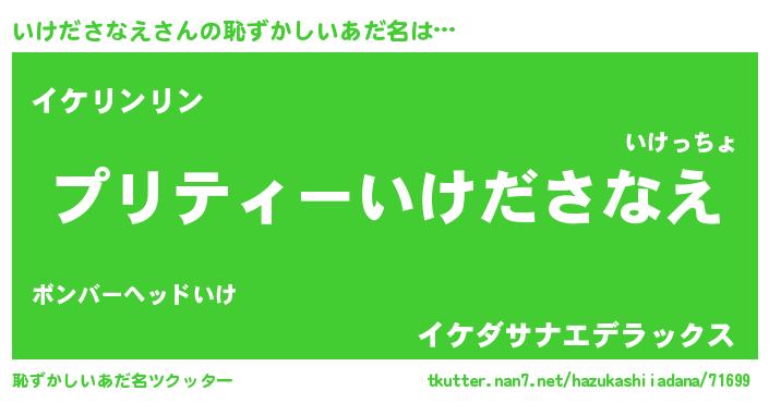 | ヒーロー風カッコイイあだ名 | 『スーパーイケダサナエ』『銀牙騎士イケ』 |