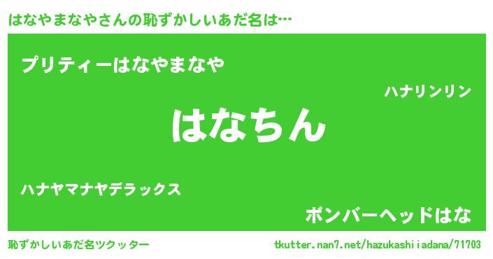 | ヘコむあだ名 | 『はなやまなや(苦笑)』『はなにゅー』 |