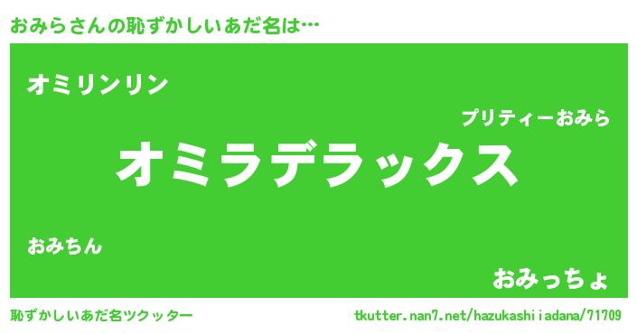 | 男性向けラノベタイトル風あだ名 | 『オミラスレイヤー』 |