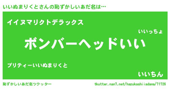 | 意味不明あだ名 | 『住所不定無職いいぬまりくと(10歳)』 |