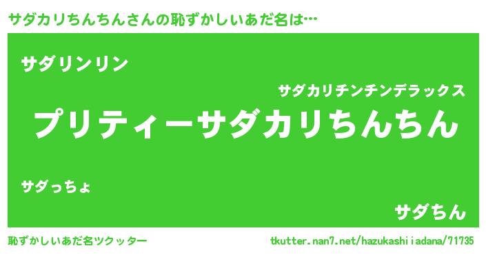 | 男性向けラノベタイトル風あだ名 | 『サダカリチンチンアートオンライン』 |