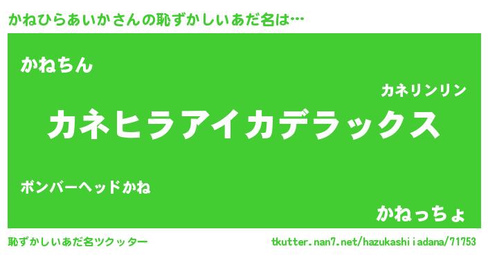 | ヘコむあだ名 | 『かねひらあいか(笑)』『牛乳』 |