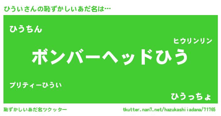 | ヒーロー風カッコイイあだ名 | 『慈愛の使者ひうい』『仮面ヒウダー』 |