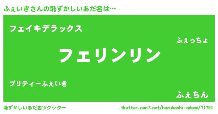 | 欧米人風あだ名 | 『アンジェラ・ふぇいき』 |