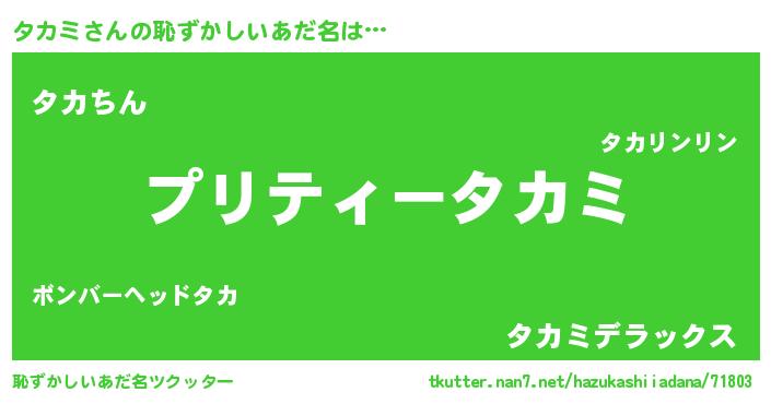 | ヘコむあだ名 | 『タカにゅー』『タカミ(笑)』 |