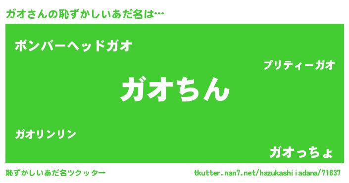 | 男性向けラノベタイトル風あだ名 | 『ガオという概念が存在しない退屈な世界 』 |