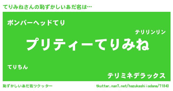 | ヒーロー風カッコイイあだ名 | 『スーパーテリミネ』『愛の使者てりみね』 |