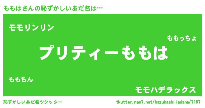 | 料理風あだ名 | 『ももはごはん』『ももはの豆乳スープ』 |