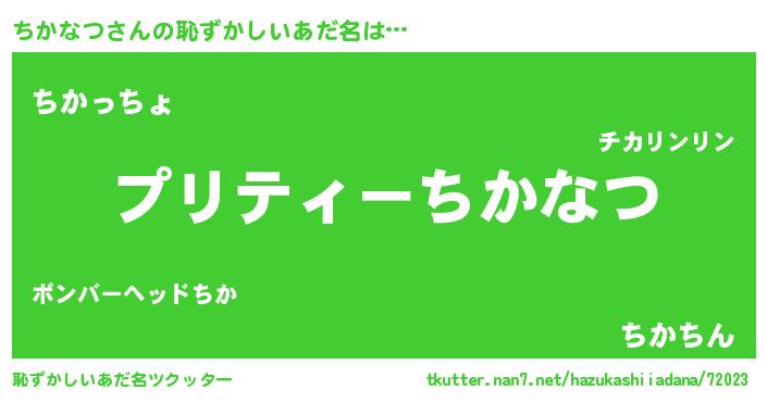 | 意味不明あだ名 | 『ペロリンちかなつ』『永久保存ちかなつ』 |