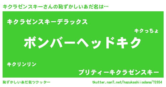 | 男性向けラノベタイトル風あだ名 | 『ノーゲーム・ノーキクラゼンスキー』 |