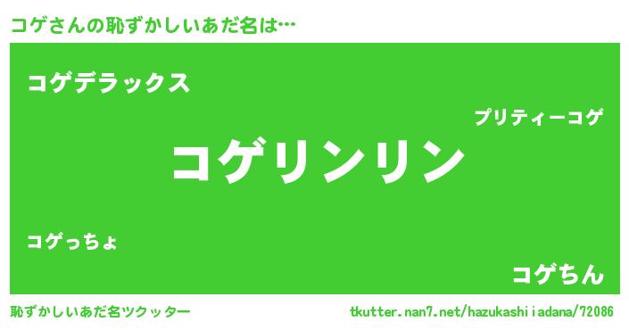 | 意味不明あだ名 | 『エリンギ科コゲ属』『自称コゲ』 |
