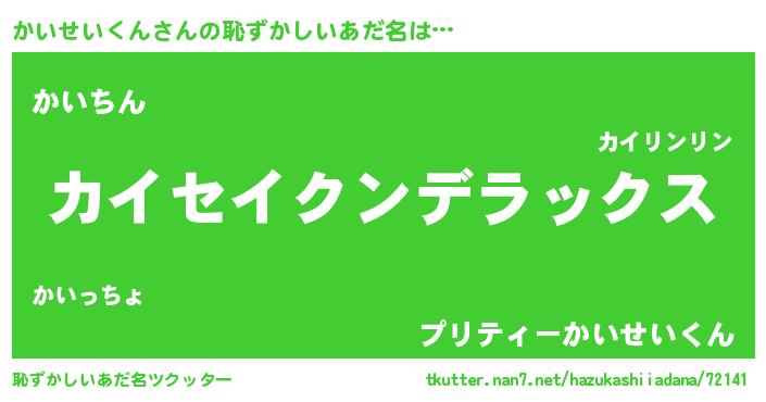 | 男性向けラノベタイトル風あだ名 | 『Re:かいせいくんから始める異世界生活』 |