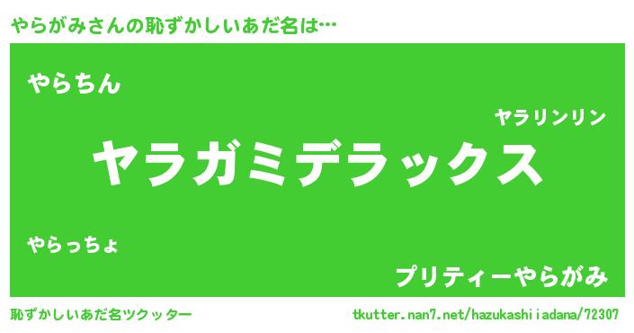 | ヘコむあだ名 | 『やらがみ(苦笑)』『やらふぇ~』 |