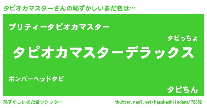 | ヒーロー風カッコイイあだ名 | 『究極戦士タピオカマスター』 |