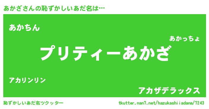 | 意味不明あだ名 | 『ペロリンあかざ』『永久保存あかざ』 |