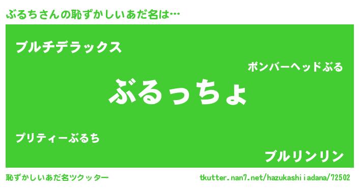 | 意味不明あだ名 | 『住所不定無職ぶるち(12歳)』『自称ぶるち』 |