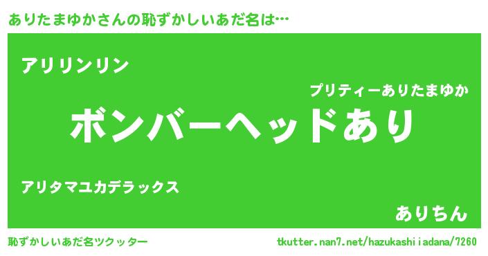 | 意味不明あだ名 | 『眠気覚ましガムありたまゆか味』 |