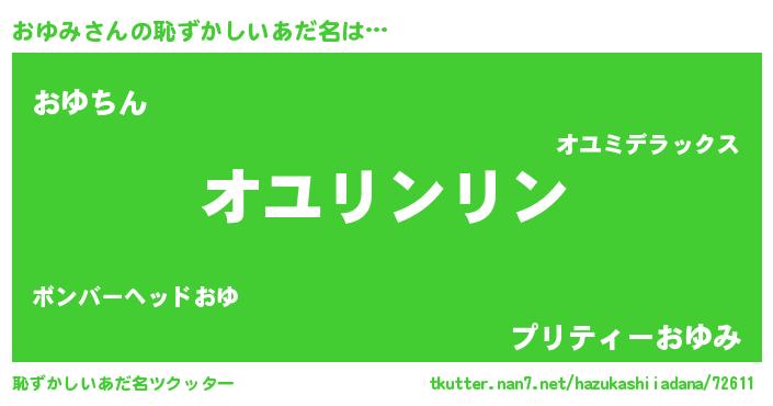 | 意味不明あだ名 | 『とにかく怪しいおゆみ』『自称おゆみ』 |