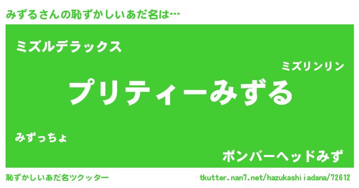 | ポケモン風あだ名 | 『ミズチュウ』『ミズセウス』 |