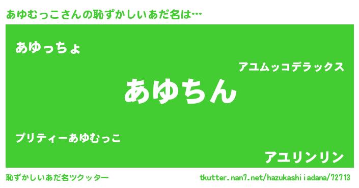 | ヒーロー風カッコイイあだ名 | 『ネオアユムッコ』『仮面アユダー』 |