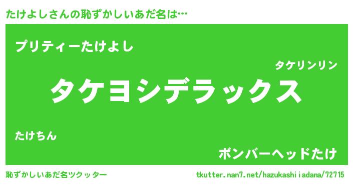 | 意味不明あだ名 | 『自称たけよし』『なめこ科たけよし属』 |