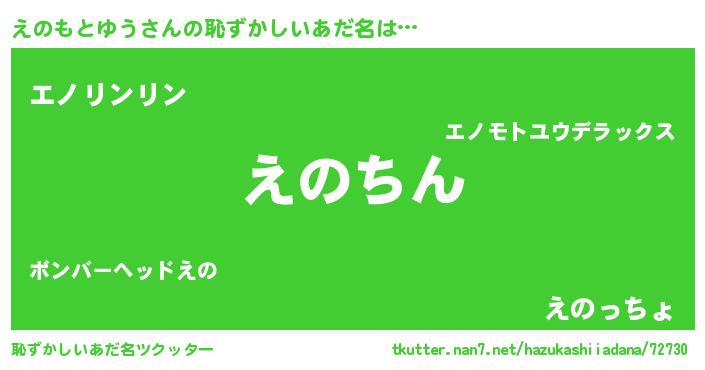 | ヘコむあだ名 | 『えのもとゆう(笑)』『えのぷりん』 |