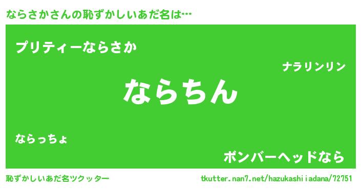 | ヘコむあだ名 | 『ならさか(苦笑)』『ならにー』 |