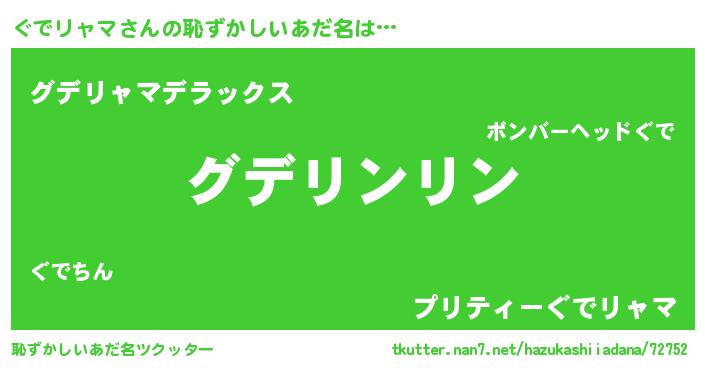 | 男性向けラノベタイトル風あだ名 | 『ダンジョンにぐでリャマを求めるのは間違っているだろうか』 |