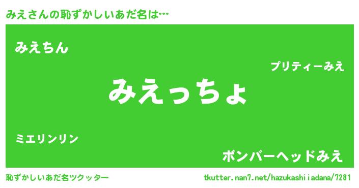 | ヘコむあだ名 | 『豆乳』『みえ(笑)』『みえもー』 |