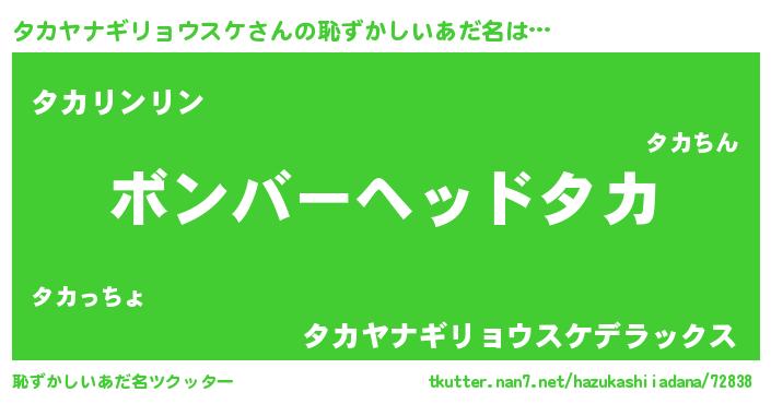 | ヒーロー風カッコイイあだ名 | 『慈愛の使者タカヤナギリョウスケ』 |