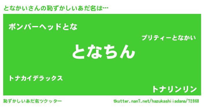 | ヘコむあだ名 | 『となかい(笑)』『となっ子』 |