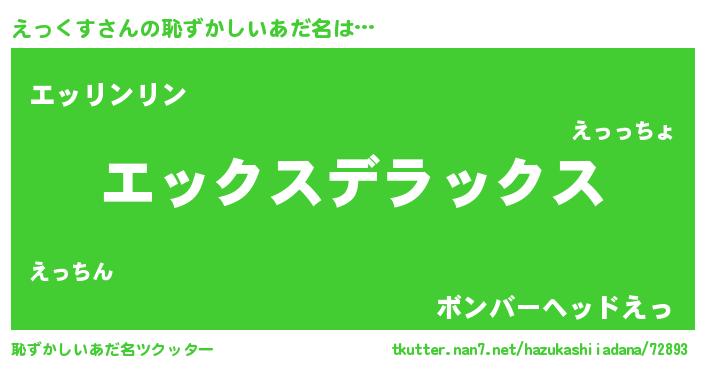 | ヒーロー風カッコイイあだ名 | 『究極戦士エックス』『黄金騎士エッ』 |