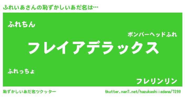 | 意味不明あだ名 | 『自称ふれいあ』『永久保存ふれいあ』 |