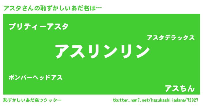| 女子向けラノベタイトル風あだ名 | 『アスタは平凡を望む』『闇のアスタ』 |