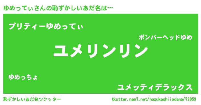 | 男性向けラノベタイトル風あだ名 | 『ゆめってぃに滅ぼされるだけの簡単なお仕事です』 |