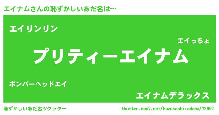 | 女子向けラノベタイトル風あだ名 | 『エイナムの玉の輿計画!』 |