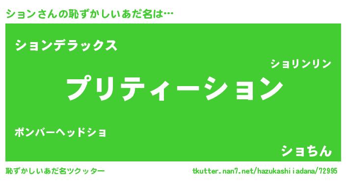 | 男性向けラノベタイトル風あだ名 | 『この素晴らしい世界にションを!』 |