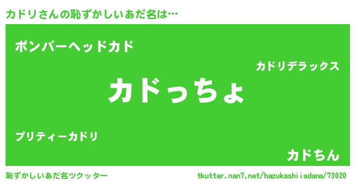 | ヘコむあだ名 | 『豆乳』『カドリ(苦笑)』『カドにー』 |