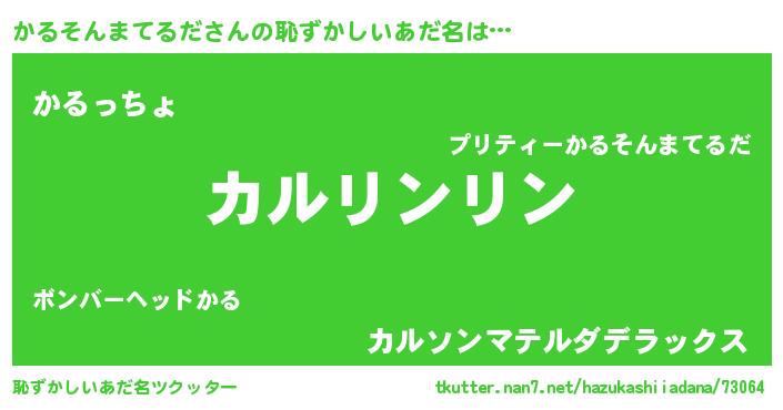| 女子向けラノベタイトル風あだ名 | 『かるそんまてるだの卵を拾いまして』 |