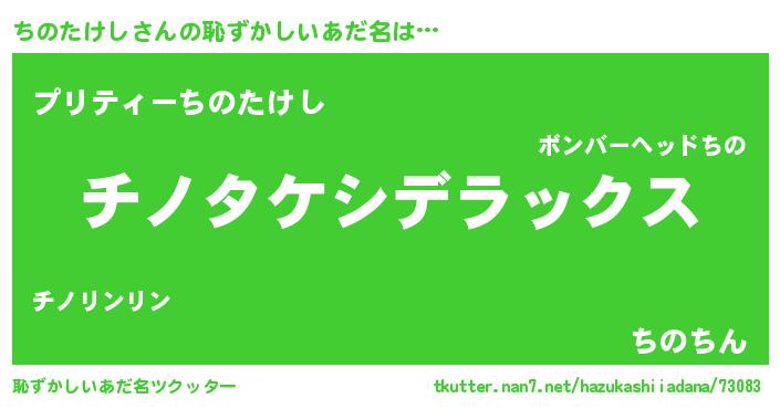 | 意味不明あだ名 | 『自称ちのたけし』『ペロリンちのたけし』 |