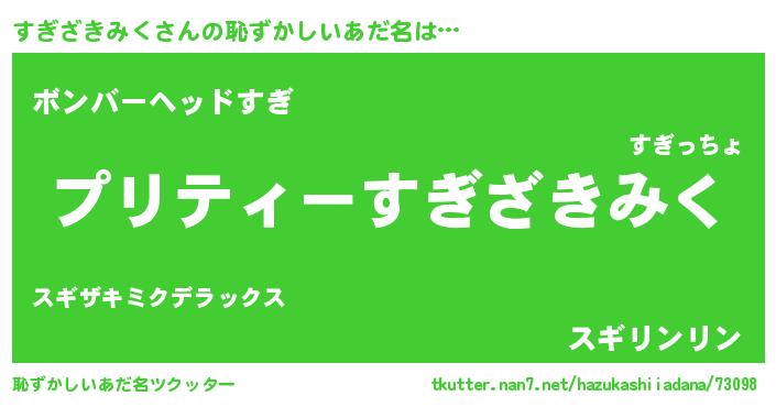 | ヒーロー風カッコイイあだ名 | 『スーパースギザキミク』『銀牙騎士スギ』 |