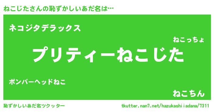 | 男性向けラノベタイトル風あだ名 | 『ネコジタスレイヤー』『緋弾のネコジタ』 |