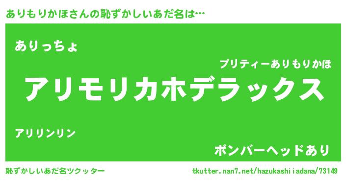 | 男性向けラノベタイトル風あだ名 | 『ありもりかほに滅ぼされるだけの簡単なお仕事です』 |