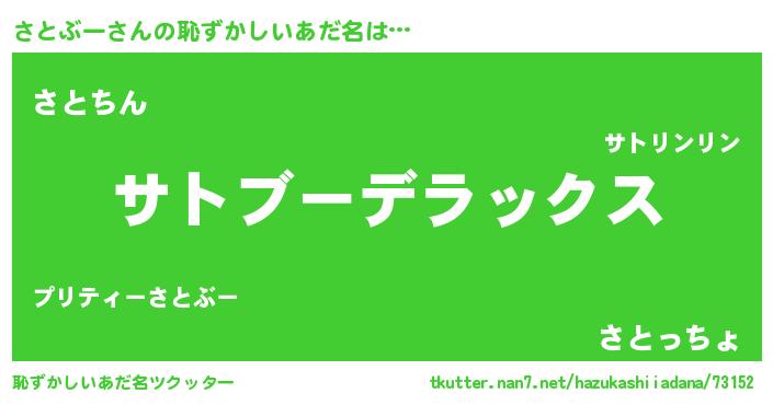 | 意味不明あだ名 | 『自称さとぶー』『永久保存さとぶー』 |